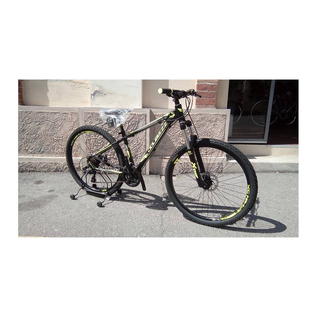 CICLO 27,5 MTB UOMO TELAIO 48/L ALLUMINIO 21 VELOCITA' FRENI A DISCO MECCANICI FORCELLA AMMORTIZZATA *NEROGIALLO" - DOUBLEZZ "